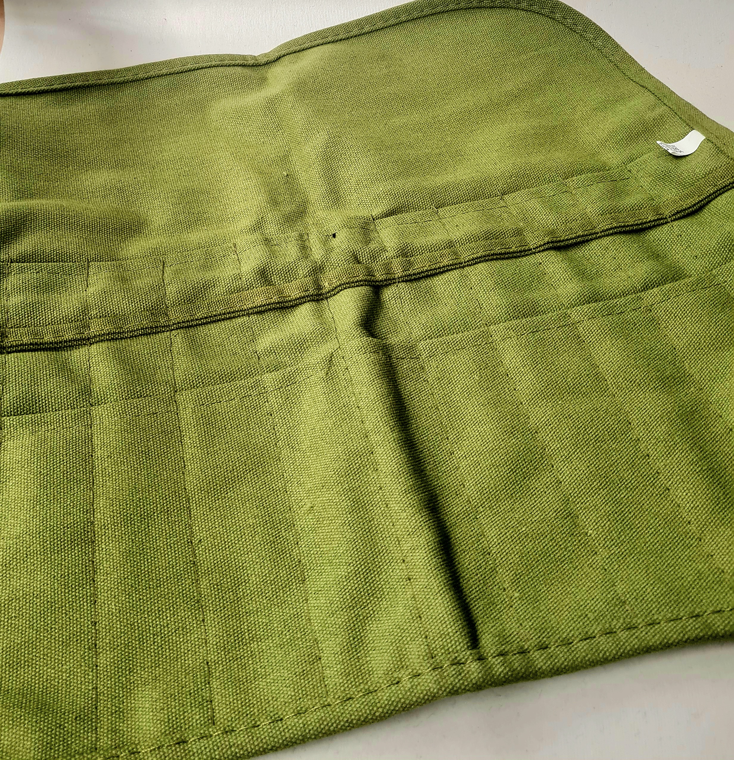 مقلمة قماش لون اخضر تستخدم للقصب والأقلام
